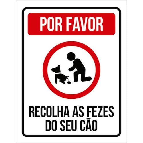 Kit 10 Placas Por Favor Recolha Fezes Seu Cão 36x46 Placas de sinalizaço fabricadas com poliestireno de alto impacto PSAI de 2mm e impressão ultravioleta.