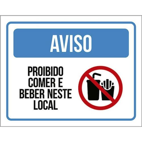 Kit 10 Placas Proibido Comer Beber Neste Local 36x46 Placas de sinalizaço fabricadas com poliestireno de alto impacto PSAI de 2mm e impressão ultravioleta.