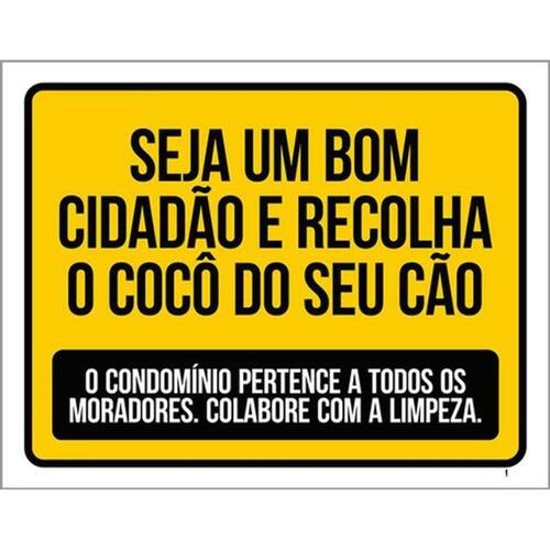 Kit 10 Placas Seja Um Bom Cidadão Recolha Cocô Cão 36x46 Placas de sinalizaço fabricadas com poliestireno de alto impacto PSAI de 2mm e impressão ultravioleta.