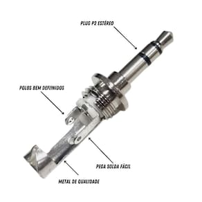 Kit com 10 plugues P2 macho estéreo de metal profissional para celular com capa. Solda fácil e ótimo acabamento.Tipo