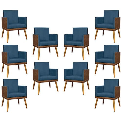 KIT 10 POLTRONAS LIS CORINO E SUEDE CORES PÉ PALITO 30 CM CASTANHO
