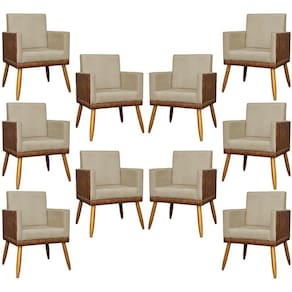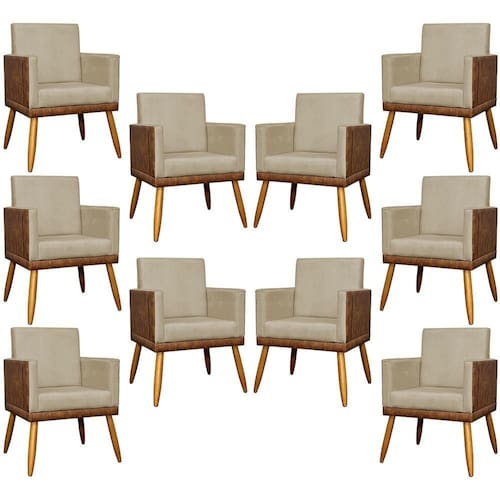 KIT 10 POLTRONAS LIS CORINO E SUEDE CORES PÉ PALITO 30 CM CASTANHO