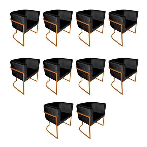 AS IMAGENS SÃO MERAMENTE ILUSTRATIVAS E PODEM SOFRER VARIAÇÕES DE COR E PEQUENOS DETALHES DE ACORDO COM O SEU MONITOR, ILUMINAÇÃO DO AMBIENTE E ATÉ MESMO A SUA PERCEPÇÃO VISUAL.Kit 10 Poltronas Decorativa Sala De Estar Base De Ferro Cobre Veludo Preto