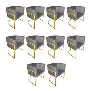 AS IMAGENS SÃO MERAMENTE ILUSTRATIVAS E PODEM SOFRER VARIAÇÕES DE COR E PEQUENOS DETALHES DE ACORDO COM O SEU MONITOR, ILUMINAÇÃO DO AMBIENTE E ATÉ MESMO A SUA PERCEPÇÃO VISUAL.Kit 10 Poltronas Decorativa Sala De Estar Base De Ferro Dourada Veludo Cinza