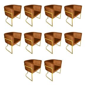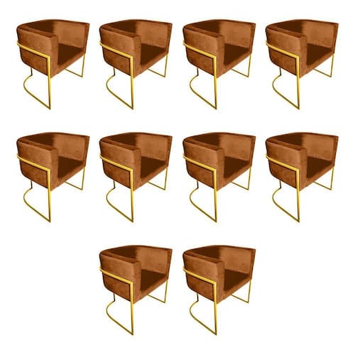AS IMAGENS SÃO MERAMENTE ILUSTRATIVAS E PODEM SOFRER VARIAÇÕES DE COR E PEQUENOS DETALHES DE ACORDO COM O SEU MONITOR, ILUMINAÇÃO DO AMBIENTE E ATÉ MESMO A SUA PERCEPÇÃO VISUAL.Kit 10 Poltronas Decorativa Sala De Estar Base De Ferro Dourada Veludo Terracota