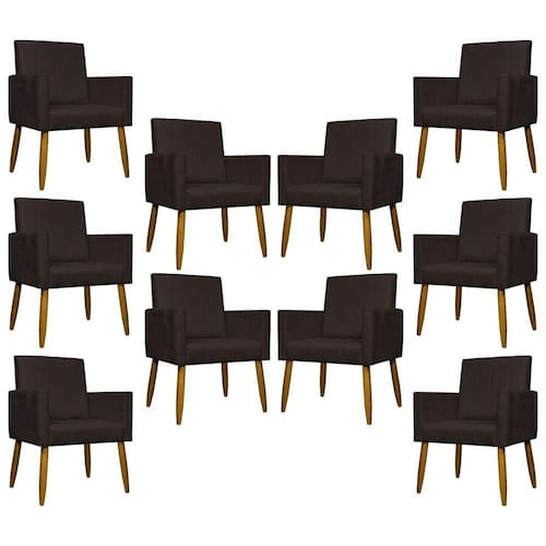 Kit 10 Poltronas Decorativas Mari Pé Palito Castanho - Marrom Suede