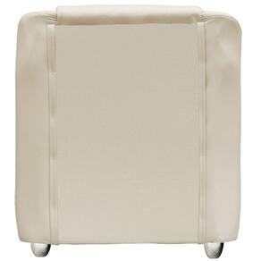 Ainda conta com uma estrutura em madeira de eucalipto, percintas elásticas em nylon, espuma soft D-26 para um maior conforto, grampos galvanizados para uma resistência melhor, tecido corino, e pés de plástico na cor cromada.