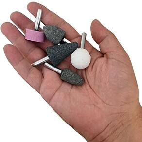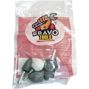 Kit 10 Pontas Montadas Rebolo Abrasivo Haste 6mm Multiuso Bravo Tools - Marca: Bravo Tools - Referência: BV1006 - Indicada para limpezas e acabamentos em superfícies - Diâmetro da haste: 6mm - 2 Ponta Cilíndrica Branca 22 x 22mm Grão Fino - 2 Ponta Tipo Roda Rosa 24 x 12,5mm Grão Médio - 2 Ponta Tipo Bala Cinza 16 x 26mm Grão Grosso - 2 Ponta Tipo Árvore Cinza 24 x 35mm Grão Grosso - 2 Ponta Tipo Cônica Cinza 19 x 27mm Grão Grosso - Material da ponta: Óxido de alumínio Corundum - As pontas montadas são indicadas para uso geral - Uso em retificadeiras e furadeiras de qualquer marca com mandril de 6mm - Indicada para afiação, esmerilhamento e desbaste em metais, joias, pedras preciosas, vidro, entre outros materiais - Ideal para trabalhos detalhados em uma variedade de superfícies, oferecendo remoção de material suave e precisa - Seu formato facilita o trabalho em locais de difícil acesso - Velocidade máxima: 25.000rpm - Peso bruto: 90 gramas - : 90 dias contra defeitos de fabricação Marca: Não Informado