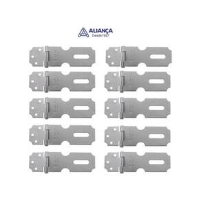Kit 10 Unidades Porta Cadeado 3.1/2 89mm Aliança Porta cadeado de excelente qualidade, contra a oxidação e design moderno.Material: Aço com acabamento zincado.Indicado para trancar portas, portões e armários com auxílio de um cadeado. Incluso nesse item: 10 Unidades Porta Cadeado 3.1/2 89mm Aliança Ref: 11075002Marca: Aliança