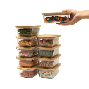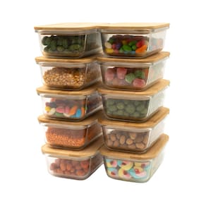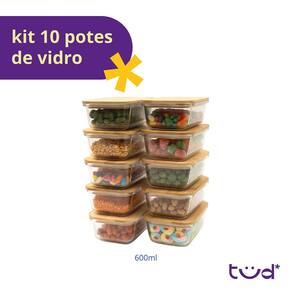 "Oii! Tüd bem? Vem saber mais sobre o kit de 10 potes de vidro com tampa de bambu herméticos retangulares de 600ml da Tüd!