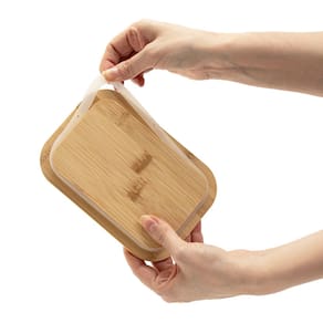 A tampa de bambu possui tratamento de verniz natural (Não transfere cheiro ou gosto para sua comida).
