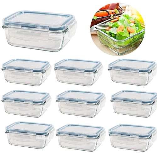 Nome do Produto: Kit 10 Potes de Vidro Hermético Retangular 640ml