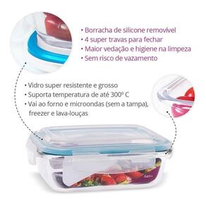 Produzidos em vidro temperado de alta qualidade, esses potes podem ser levados ao forno micro-ondas, freezer, geladeira, máquina de lavar louças e à mesa. Suas tampas resistentes possuem fechamento 100% hermético, garantindo que seus alimentos fiquem frescos por mais tempo e sem qualquer vestígio de cheiro ou sujeira.
