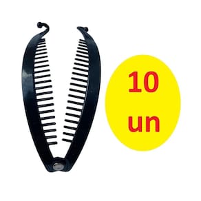 Contém: 10 unidades Presilhas De Cabelo Preta Estilo Banana com Pente 14cm