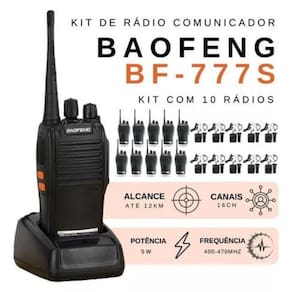 Kit 10 radio comunicador walk talk bf-777s baofeng Eleve a comunicação e a segurança com o rádio comunicador vhf/uhf/fm walkie talkie bf-777s