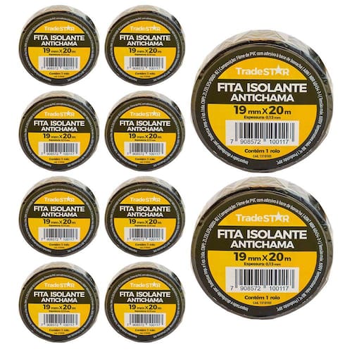 Kit 10 Rolos Pç Fita Isolante 20 Metros Preta