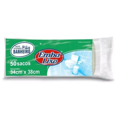 Especificações : -50 sacos -50 sacos 34 cm x 38 cm Marca: embalixo Modelo: pia,banheiro Litros: 15 litros para pia Produto reciclado e reciclável Validade: indeterminada Saco de lixo em rolo