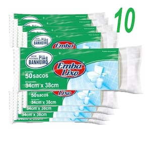 -feito material reforçado -sacos para lixo específicos para banheiro -cor branca -ecológico -fácil aplicação -resistente -50 sacos cada embalagem -50 sacos 34 cm x 38 cm