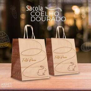 Kit 10 Sacola De Papel Kraft Coelho Dourado P 13,5X8X19Cm