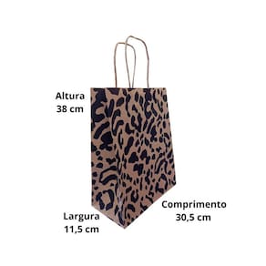 Kit 10 Sacola de Papel Kraft Estampa de Onça 30,5x11,5x38 cm Contém:kit 10 Sacola de Papel Kraft Estampa de Onça