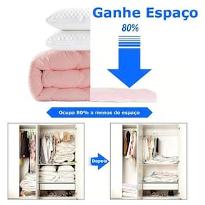 Organize e compacte: reduza o volume de suas roupas, edredons e outros itens em até 80%. Proteja suas roupas: mantenha suas peças livres de poeira, umidade e mofo. Ideal para viagens: leve mais roupas em menos espaço. Reutilizáveis: economize dinheiro e ajude o meio ambiente. Kit 10 sacos organizadores a vacuo vacuum bag