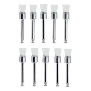 Kit 10 taças de borracha + 10 escovas de Robson para profilaxia odontológica AAF Indicadas para os procedimentos de profilaxia, polimento e higienização da arcada dentaria, as Escovas de Robson e as Taças de Borracha podem ser utilizadas com pasta de polimento ou óleo mineral.