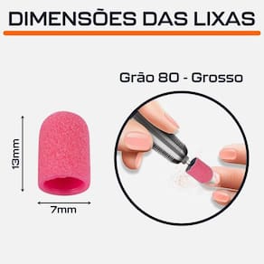 Kit com 10 Tampas de Lixa Cônica 7x13mm Grão 80 Rosa para Lixar Unhas de Gel com Micro Retíficas e Mini Lixadeiras