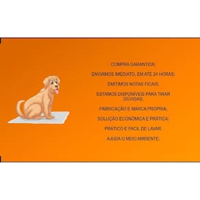 =============================================== Especificação do produto: Fabricação própria, fabricado com duas camadas. A primeira camada com alta absorção composição: feltro 270 Gr/m, aproximadamente 4 mm de espessura ; A segunda camada, impermeável para retenção da urina, impedindo que vaze para o chão. composição: plástico maleável de 0,10 mm , com borda de viés preto de 22 mm. Produto ecológico e bem mais econômico do que os descartáveis e absorve mais. Parte superior própria para alta absorção. Fácil de usar, apenas passar na água corrente e colocar pra secar. Para os pets macho, orientamos a colocar um cone no centro do tapete. Pode ser utilizado no interior do sanitário canino, não inala odor. Garantimos a qualidade do produto.