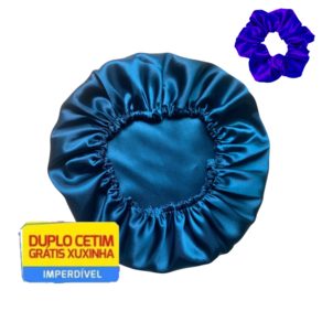 Kit 10 Toucas de Cetim Antifrizz Dupla Face Alto Brilho Ajustável + Xuxinha - Cor: Azul