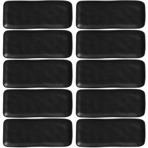 Conjunto 10 Travessas Retangulares 22x9cm Orgânico Preto Matte Cerâmica Porto Brasil Restaurante Japonês Buffet