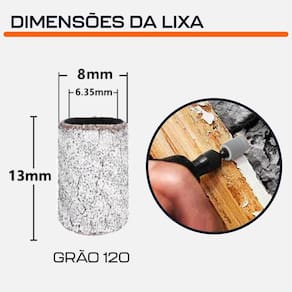 Kit 10 Tubos de Lixa 6.4mm 1/4 Pol. Grão 120 Branco para Micro Retíficas Dremax