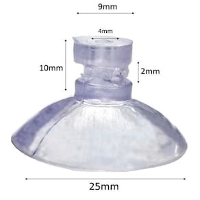 10 Ventosas de 25mm (2,5cm) De Silicone P/Vidro Acrílico Pvc O Kit é composto por 10 unidades da Ventosa de 2,5 cm (25mm). Ficha Técnica: - Ventosa de 25mm (2,5cm) PVC Silicone Fixação - Produzidas em plástico, silicone e PVC Cristal, garantem boa fixação em superfícies lisas e não porosas - Adequado para utilizar em display e entre o vidro e a base da mesa, evitando o deslocamento do vidro - Cor: Transparente (incolor) - Diâmetro 25mm (2,5cm)