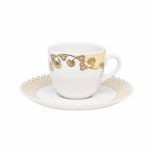 Kit 10 Xícaras Cafézinho Coup Golden Oxford® Porcelana Borda Em Ouro 75ml -