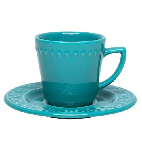 Kit 10 Xícaras com Pires Mendi Enseada Oxford® Cerâmica 200ml -