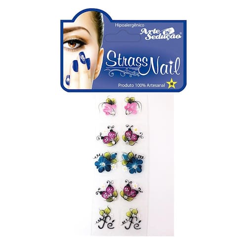 Todos adesivos da linha STRASS NAIL vem com pedraria strass, com cores que combinam com cada desenho. Pioneira no mercado, os adesivos Arte Sedução são 100% ARTESANAL e HIPOALERGÊNICOS, feitos com uma camada de gel exclusiva que derrete na unha, facilitando o aplique. Cada detalhe feito a mão pelas designers, faz com que cada adesivo seja único.