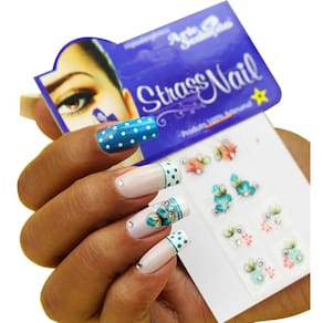 Esse KIT contém 10 cartelas STRASS NAIL com 10 adesivos cada, totalizando 100 adesivos.