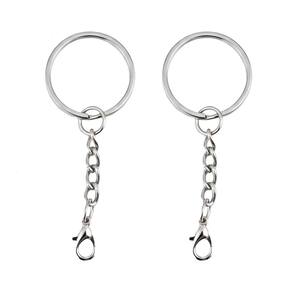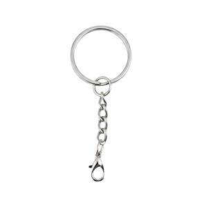 KIT 100 CHAVEIROS ARGOLA COM CORRENTE E GANCHO – PRATA PREMIUM