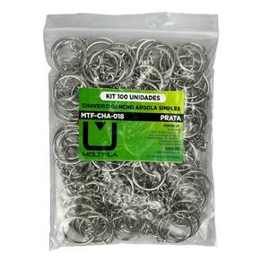 01 Pacote com 100 unidades de Chaveiro Argola com Corrente e Gancho.