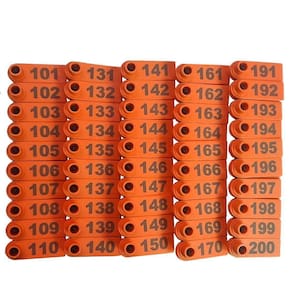 Kit 100 Brinco Bovino Identificação Gado Numerado de 101 a 200 Laranja Charbs- Marca: Charbs- Referência: CH00211-L- Cor: Laranja- Numeração de 101 e 200- Brincos Universal para Marcação de Bois, Porcos, Ovelhas, Carneiros- Acompanha 100 Marcadores Numéricos e 100 Pinos Machos- Brincos fabricados com matéria prima alta qualidade- Grande resistência a tração, intempéries, abrasão e legibilidade, assim como a permanência no animal ao longo de anos- Brincos Tip - Tag são amplamente utilizados na Nova Zelândia, Austrália e em toda Europa, para identificação de carneiros e cordeiros pesados e bovinos.- Tais identificadores são atualmente considerados a melhor opção entre custo e benefício do segmento.- Garantia: 90 dias