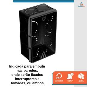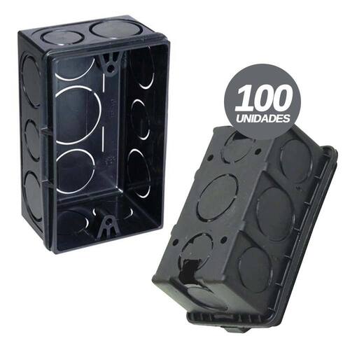 Kit 100 Unidades Caixa Plástica de Luz 4x2 Preta PVC para Interruptor ou Tomada Espaço interno e resistência na medida certa para sua instalação.Indicada para embutir nas paredes, onde serão fixados interruptores ou tomadas, ou ambos.A base dos parafusos isolam totalmente os parafusos, evitando qualquer possibilidade de descarga no manuseio.Produzido em polipropileno.Bitola: 4 x 2Cor: Preta Ref.: 03035001 100 Marca: Iv Plast