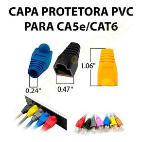 Compatibilidade: Cabos de rede UTP categoria CAT5, CAT5e e CAT6 Conectores RJ45 padrão macho Material: PVC flexível com acabamento emborrachado Alta resistência mecânica e durabilidade Dimensões aproximadas (por unidade): Comprimento: 21 mm Largura: 12 mm Altura: 10 mm Marca: Não Informado