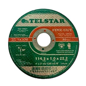 Marca: Telstar Superfícies aptas: Aço, Aço Inox, Ferro Diâmetro central: 22mm Tipo de disco: De corte. Diâmetro do disco de corte: 114.3 mm. Material: Óxido de alumínio. Modelo: Fine Cut 2T. Espessura: 1.0 mm.