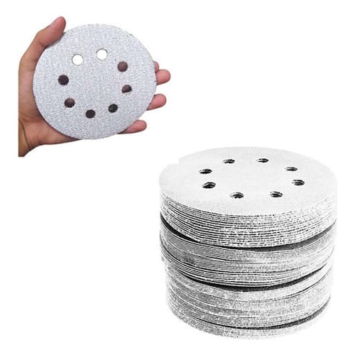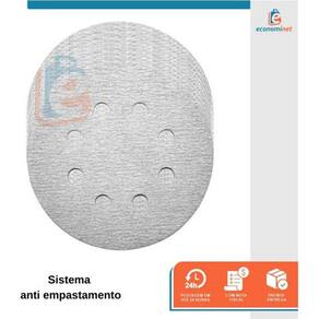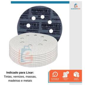 CARACTERÍSTICAS TÉCNICAS: Material: Resina, óxido de alumínio, papel e pluma Medidas: 125mm (5”) Quantidade de furos: 8 Limite máxima: 12220rpm, 80m/s Quantidade: 100 unidades Marca: Starfer