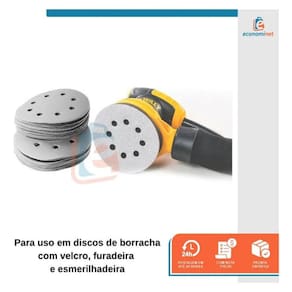 CARACTERÍSTICAS TÉCNICAS: Material: Resina, óxido de alumínio, papel e pluma Medidas: 125mm (5”) Quantidade de furos: 8 Limite máxima: 12220rpm, 80m/s Quantidade: 100 unidades Marca: Starfer