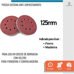 Kit 100 Unidades Disco de Lixa Vermelho 125mm 60/100/120/150/180 - Starfer• Disco de lixa abrasivo com pluma para uso em discos de borracha;• Com pluma para furadeira e esmerilhadeira;• Indicado para lixar Ferro e Madeira.• 8 Furos- Diâmetro = 125mm;- Rotação Máxima = 12220rpm - 80m/s.- Embalagem: Total de 100 Unidades• Composição:- 20 Unidades Disco de Lixa Grão 60- 20 Unidades Disco de Lixa Grão 100- 20 Unidades Disco de Lixa Grão 120- 20 Unidades Disco de Lixa Grão 150- 20 Unidades Disco de Lixa Grão 180Ref.:78916389920Marca: Starfer