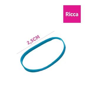 O elástico para cabelo Ricca é um acessório feito de filamento sintético e borracha, sem o uso de metal.