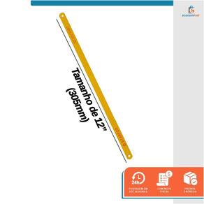 Especificações técnicas: Material: Aço carbono 24 dentes para cortes rápidos e precisos Para metais leves e não ferrosos Ideal para Plásticos, Metais, Madeiras Cor: Amarelo Comprimento: 12" (305mm) Largura: 1/2" (12,7mm) Marca: Starfer Ref.: 13013918