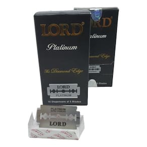 100 cem lâminas de barbear descartável da marca lord platinum diamond edge - produto 02 caixas contendo em cada uma delas 50 cinquenta lâminas de barbear descartável em aço inoxidável . Produto higiênicamente embalado - produto importado, produzido no egito. Produto não perecível com prazo de validade indeterminado.