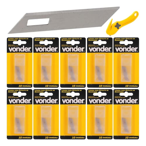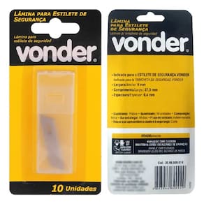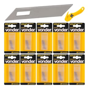 Kit 100 Lâminas Para Estilete Segurança 9mm Indicado para Estilete De Segurança Vonder (Bico De Pato) As Lâminas Para Estilete da marca Vonder são ideias para você que precisa fazer cortes precisos e seguros em diversos materiais. Possui lâmina em aço, proporcionando excelente resistência. DADOS TÉCNICOS Tipo: RetaComprimento total: 37,5 mmLargura: 9 mmMaterial da lâmina: AçoEspessura: 0,4 mm Mantenha-o longe de crianças e animais, use luvas para proteger as mãos e troque a lâmina quando necessário. Assim, você aproveita o máximo do seu estilete sem riscos. Conteúdo: 100 Lâminas Ean: 7893946620929