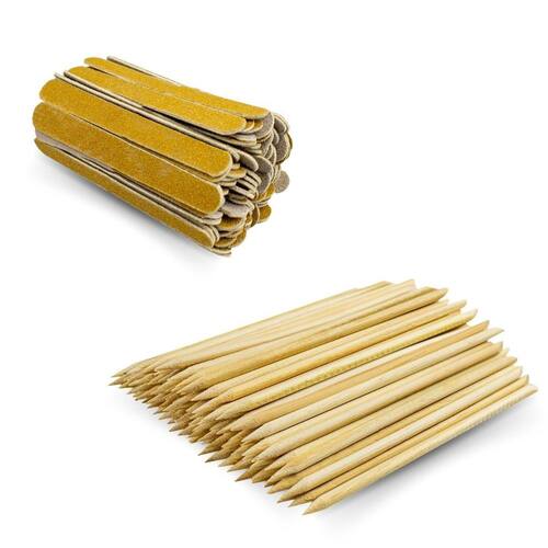 Características Principais: - Com uma grande quantidade de palitos e lixas, este kit oferece flexibilidade para realizar vários atendimentos de manicure e pedicure; - Ótimo custo benefício; - Material durável e resistente; - Itens descartáveis, garantindo higiene e biossegurança a você e seu clientes; - Essencial para atendimentos; - Lixa com gramatura 100/180.